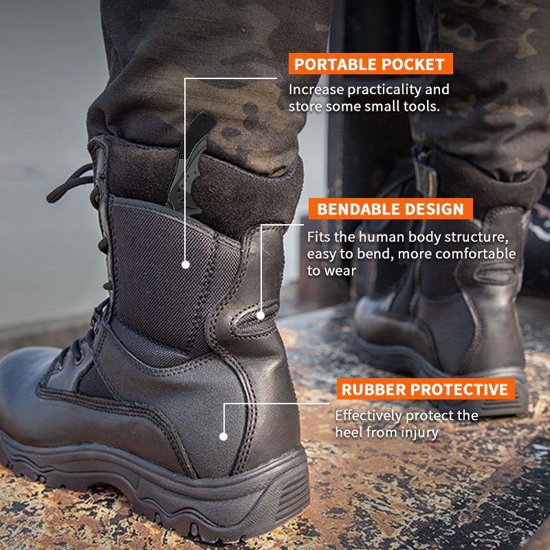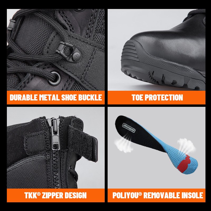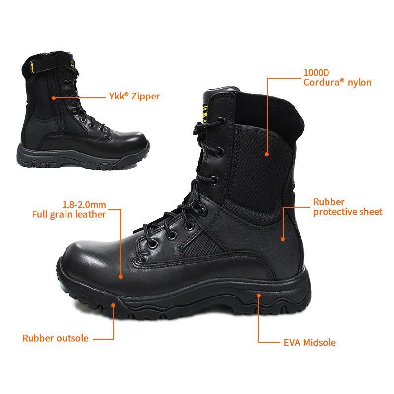 ເຫຼົ່ານີ້ YKK Zipper Full Grain Leather Police Boots ແມ່ນມີສໍາລັບການປັບແຕ່ງໃນສີ, ວັດສະດຸ, ແລະລາຍລະອຽດ, ມີ MOQ 800 ຄູ່, ເຫມາະສໍາລັບການຮ່ວມມືຂອງຍີ່ຫໍ້ແລະການຈັດຊື້ກຸ່ມ. ແລະເກີບລ່າສັດເຫຼົ່ານີ້ມີຂໍ້ໄດ້ປຽບດັ່ງຕໍ່ໄປນີ້: