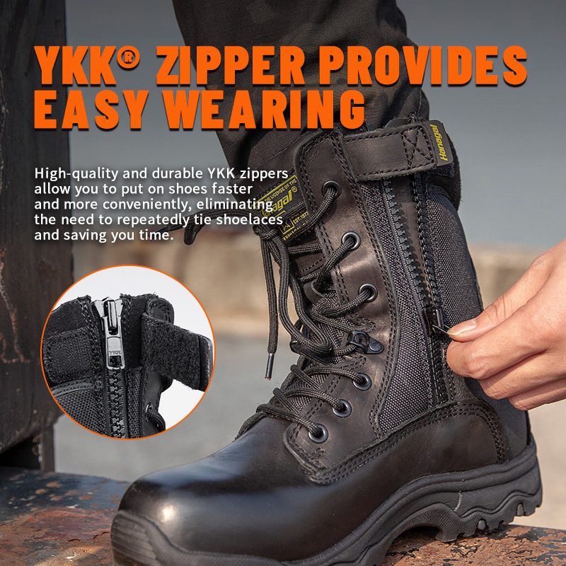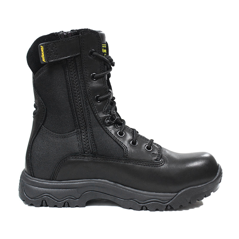 ເກີບຕຳຫຼວດໜັງ YKK Zipper Full Grain ຖືກສ້າງຂຶ້ນມາເພື່ອຄວາມໄວ ແລະ ການເຄື່ອນທີ່ - ໂດຍບໍ່ມີການສະໜັບສະໜຸນ ຫຼື ຄວາມທົນທານເມື່ອສະພາບດິນຫັນໜ້າບໍ່ດີ. ດ້ານເທິງຜະສົມຜະສານໜັງເມັດພືດເຕັມທີ່ກັນນໍ້າໄດ້ດ້ວຍຜ້າເທກໂນໂລຍີທີ່ທົນທານຕໍ່ການກັດກ່ອນ. zipper YKK ເຮັດໃຫ້ເປີດ / ປິດໄວແລະງ່າຍດາຍ. ການອອກແບບຕັດສູງ wraps ຂ້າງເທິງຂໍ້ຕີນສໍາລັບການປ້ອງກັນພິເສດແລະຄວາມຫມັ້ນຄົງ. Underfoot, midsole EVA ປະສິດທິພາບສູງສະຫນອງການ cushion ທີ່ຮ້າຍແຮງ, ແຊ່ນ້ໍາຜົນກະທົບໃນຂະນະທີ່ປ່ອຍໃຫ້ຕີນຂອງທ່ານຍ້າຍຕາມທໍາມະຊາດ. ແລະ outsole ຢາງ? lugs ເລິກ, ພິເສດໃຫ້ທ່ານຈັບໄດ້ທີ່ທ່ານຕ້ອງການ - ໄມຫຼັງຈາກໄມ.